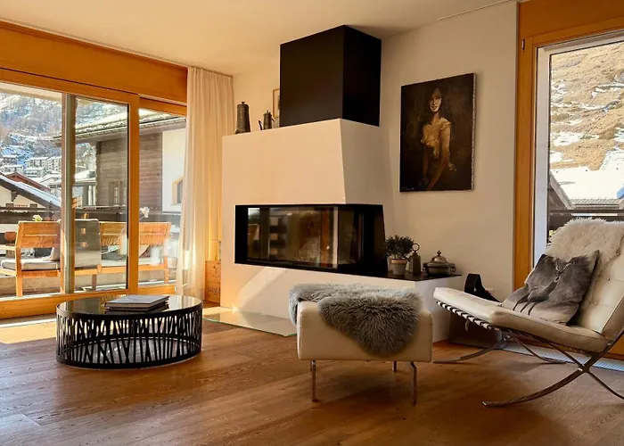 Stylish Home With Matterhorn View In The Center lägenhet erbjuder ett komplett kök samt rum med balkong, te/kaffebryggare och plattskärms-TV med satellitkanaler. Matterhorn ligger ca 3 km bort och Pfarrkirche St. Mauritius ligger 1 km från boendet.